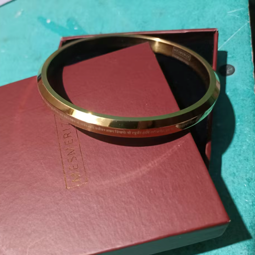 - Gloss bracelet for men in a round flat Kada style featuring Shiv design.
